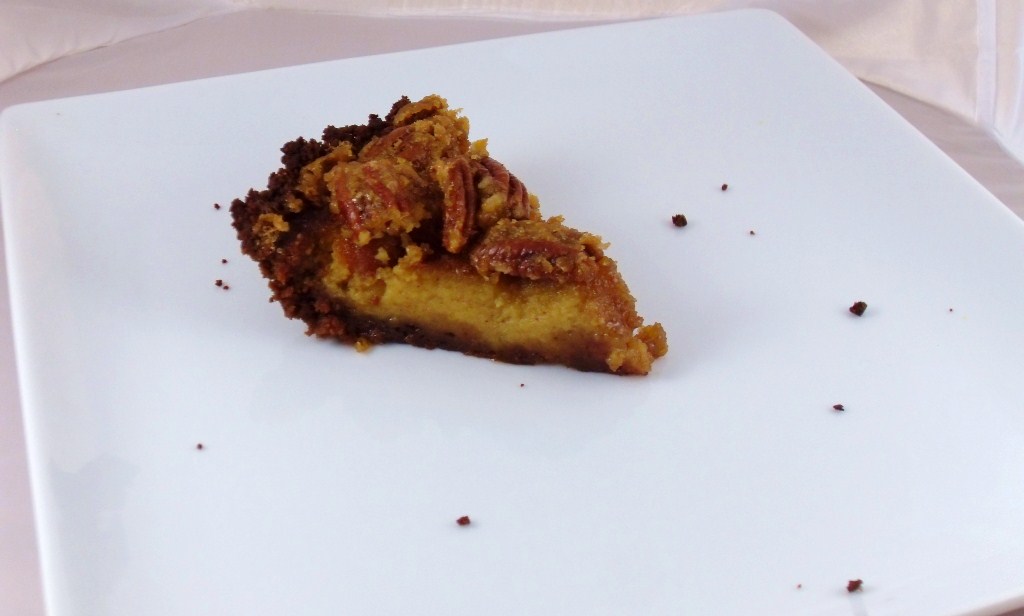 But what I came up with today was good for starters. I'm calling it my Pumpkin Pecan Pie Hybrid. I decided to mix a pumpkin pie with a pecan pie and see what happened. I was extremely excited to make up my own recipe instead of stealing somebody else's.
